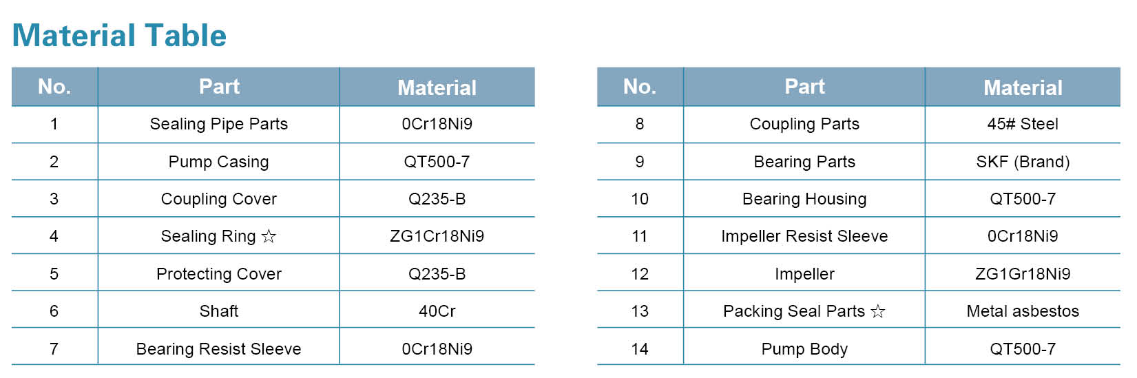 • Dengan bahan anti korosi atau anti abrasi, juga dapat digunakan untuk mentransfer air limbah industri, air laut dan air kotor dengan partikel kecil.
