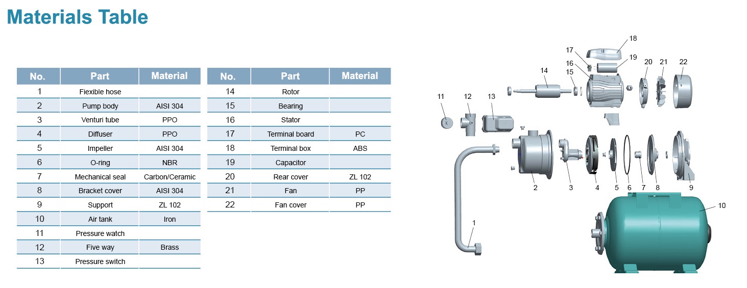 • Bodi pompa Stainless Steel dan penyangga di bawah perawatan anti karat khusus