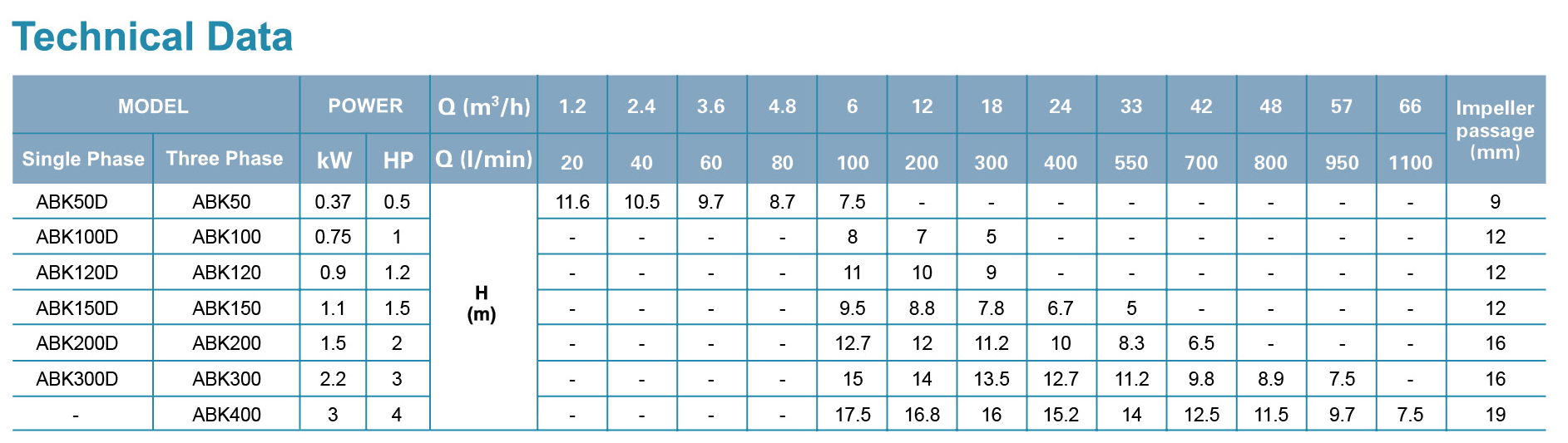 • Dapat digunakan dengan head penuh tanpa motor yang kelebihan beban.