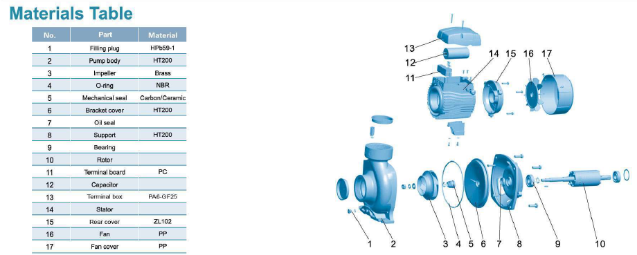 • Bodi pompa besi cor dan penyangga di bawah perawatan anti karat khusus