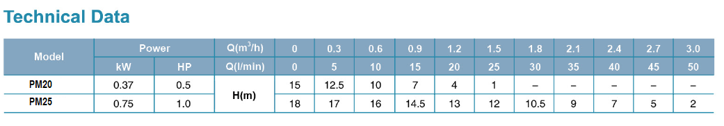 • Badan & penutup pompa AISI 304, impeller kuningan