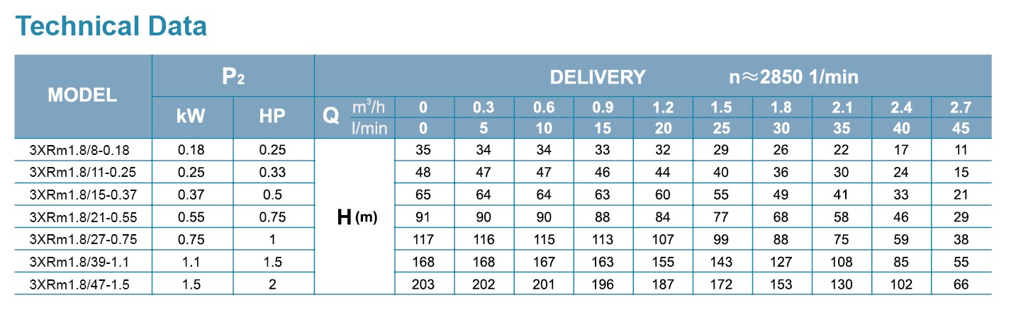 Submersible Borehole Pump 3XR 1.8/11-0.25