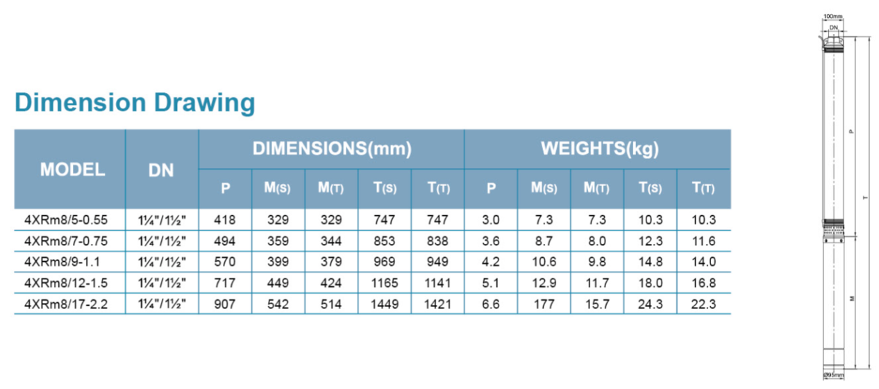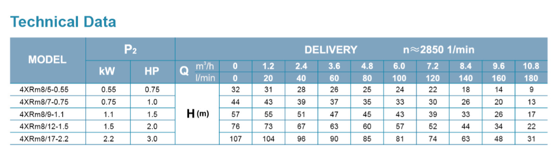 Submersible Borehole Pump 4XR 8